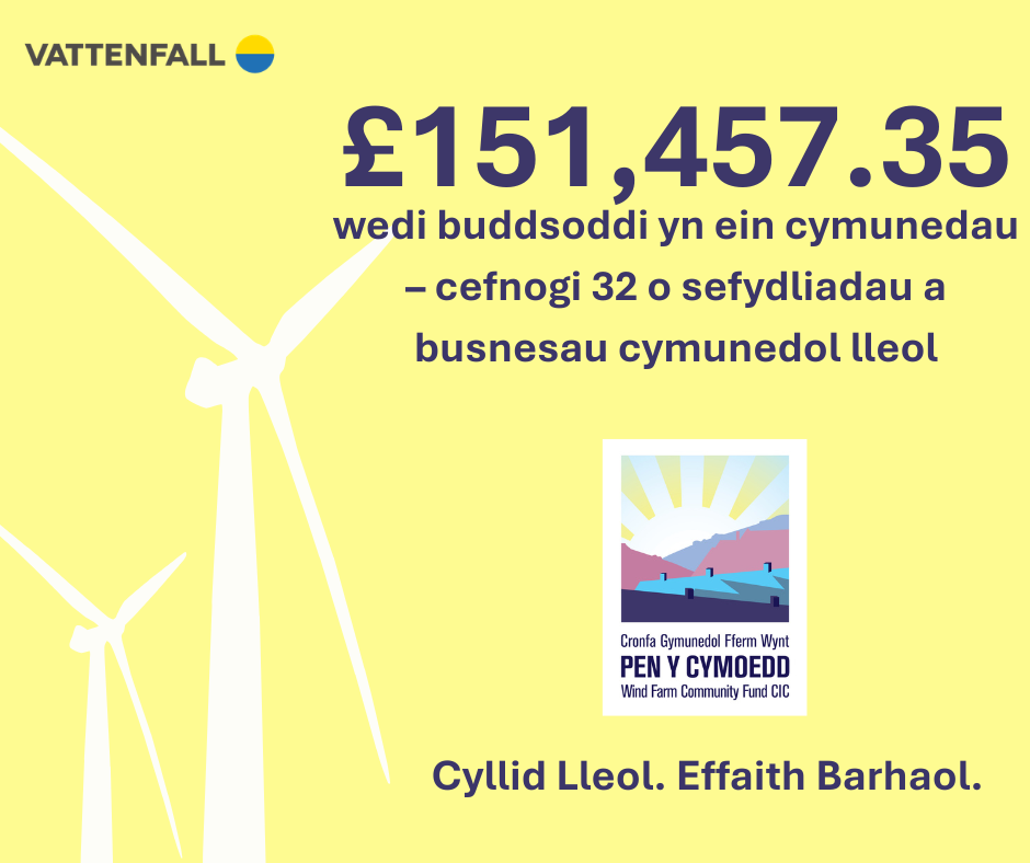 Wedi’i sefydlu yn 2016 gan y cwmni ynni Vattenfall, mae’r Gronfa Gymunedol yn darparu buddsoddiad hirdymor i’r cymunedau sy’n cynnal y fferm wynt. Gyda chyllideb flynyddol sy’n gysylltiedig â mynegeion ac sydd bellach wedi tyfu i £2.6 miliwn, mae’r Gronfa’n cefnogi pobl leol i ddatblygu syniadau, cryfhau cymunedau a buddsoddi mewn blaenoriaethau lleol.